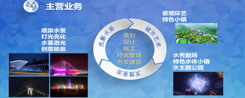 參與行業(yè)標準制定; 中國建筑金屬結構協(xié)會噴泉水景委員會發(fā)起單位之一、副主任單位; 總設計師及總工程師被聘為“中國噴泉水景專家委員會專家”。