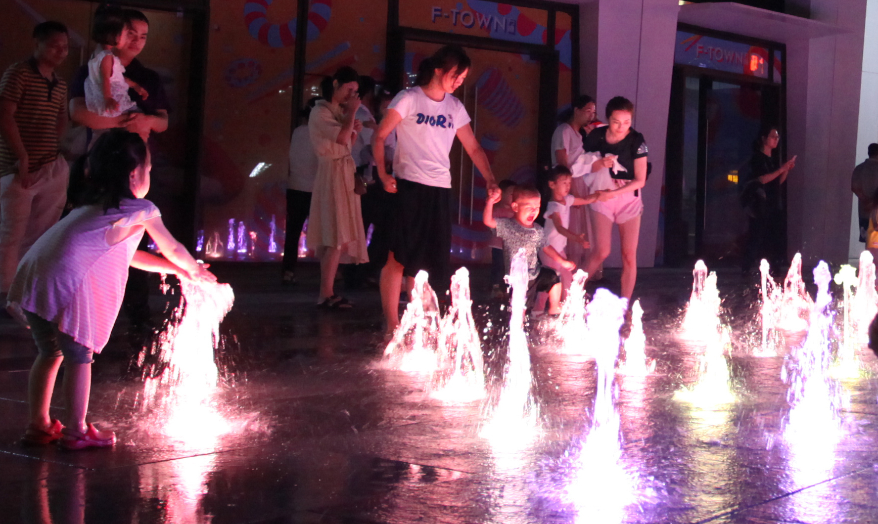 到此一游的大小朋友們都會首先被數(shù)碼水簾神奇的圖案與燈光所吸引,紛紛繞著水簾拱門拍照賞玩。數(shù)控水簾不僅可以落下各種各樣的水簾成字、圖案,