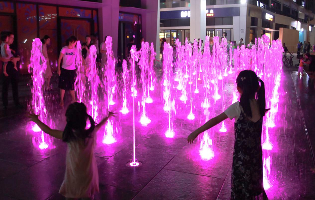 由于采用24V/DMX512低壓水泵,互動式旱噴允許游人進入水效范圍內(nèi)嬉戲,為喜愛戲水的孩童們提供安全保證。