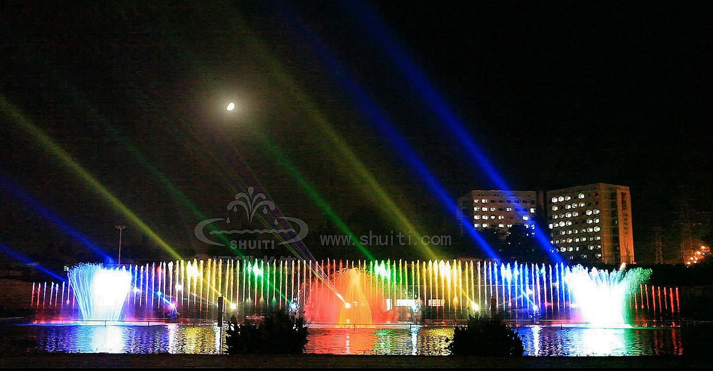 中亞塔吉克斯坦首都杜尚別國家公園大型綜合水秀,該噴泉為特大型湖中音樂噴泉,2011年竣工,長度80米,噴高60米,是東亞魅力的水秀表演之一。建成后國家總統(tǒng)親自到場觀賞并給予高度贊賞。設(shè)計有兩大部分,第一部分為綜合音樂噴泉、水幕電影、激光表演、燈光。第二部分為園區(qū)各處水景:廣場旱噴、多處景觀雕塑水景。深圳水體完成了創(chuàng)意設(shè)計、技術(shù)圖設(shè)計到噴泉水景安裝調(diào)試及水處理各項工作。